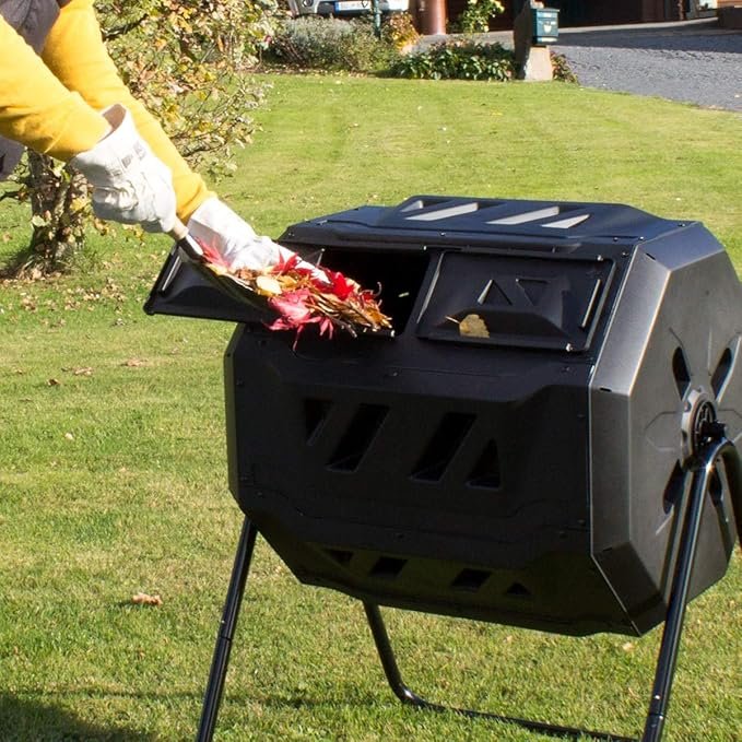 - Le composteur en bac/ en tambour : La solution la plus classique et efficace. Tu peux l’acheter en plastique ou en bois, ou même le fabriquer avec des palettes. L’idéal est de le placer sur de la terre pour que les insectes et micro-organismes puissent y circuler.